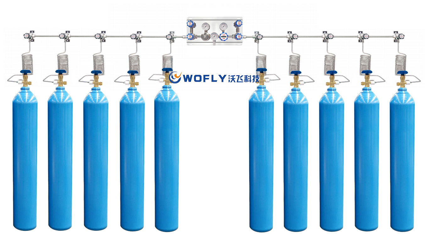 气体汇流排是一种集中充气或供气的装置,它是将多只钢瓶气体通过阀门、导管联接到汇流总管,以便同时对这些钢瓶充气;或者经减压、稳压后由管道输送到使用场所的专用设备,以保证用气器具的气源压力稳定可调,并达到不间断供气的目的。