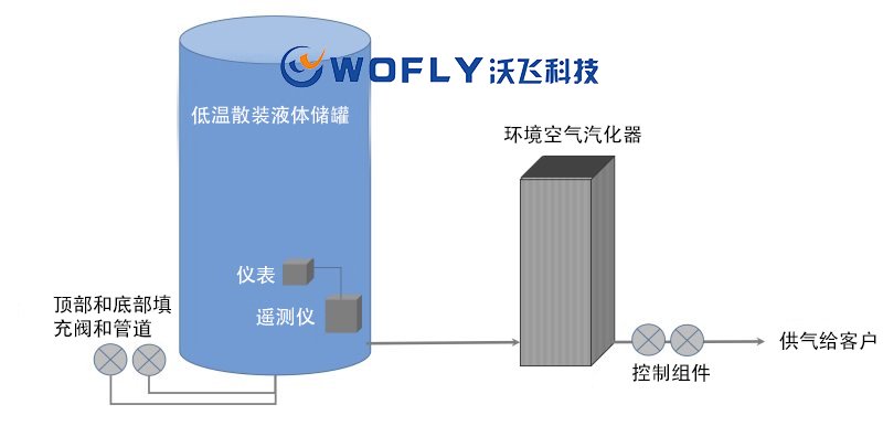 图1。典型的散装低温气体储存和分配系统。