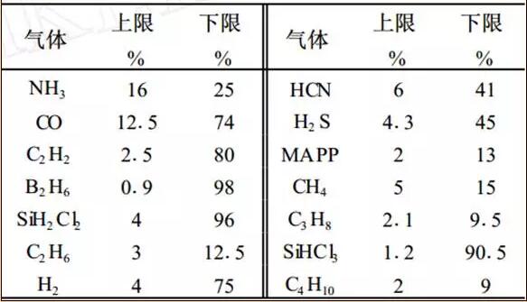 (1)部分气体在空气中的爆炸极限
