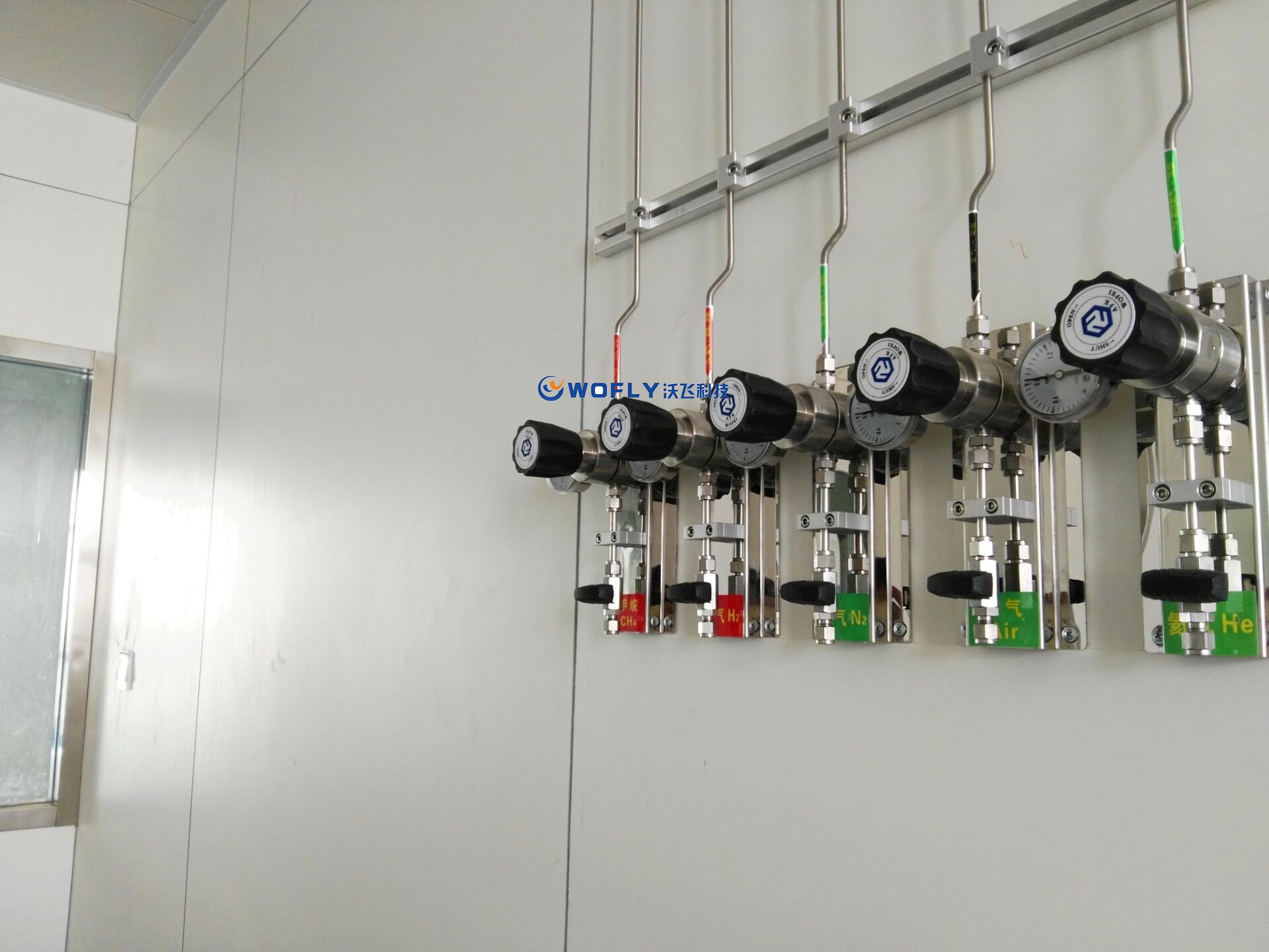 3.  解决了压力问题沃飞实验室集中供气的二级减压系统能稳定、有序的将每种气体都安全输送到使用点,减少压力风险。同时,整个气路系统压力最大的地方也就是气瓶的出口,由于气瓶间相对独立,可以减少气瓶压力的可能危害,将对人体和仪器的危害降到最低。