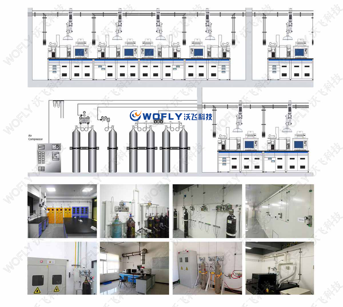 实验室供气系统,也称实验室气体工程:即从供气端到仪器使用终端之间连接管线,一般有气体切换装置—减压装置—阀门—管线—过滤器—报警器—终端箱—调节阀等部分组成。